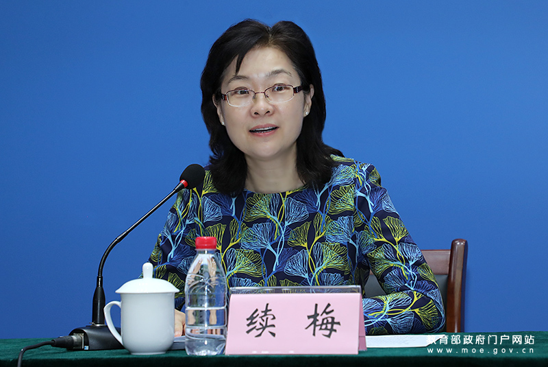 教育部新聞發(fā)言人續(xù)梅主持發(fā)布會。(中國教育報記者 張勁松/攝)