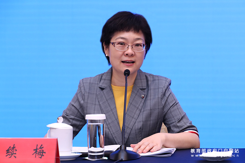 教育部新聞發(fā)言人續(xù)梅主持發(fā)布會。(中國教育報記者 張勁松/攝)