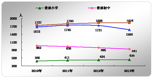 圖3 2010-2013年初等、中等教育學(xué)校校均規(guī)模變化情況