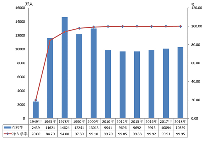 [6]小學(xué)學(xué)齡兒童凈入學(xué)率,是指小學(xué)教育在校學(xué)齡人口數(shù)占小學(xué)教育國(guó)家規(guī)定年齡組人口總數(shù)的百分比,是按各地不同入學(xué)年齡和學(xué)制分別計(jì)算的。