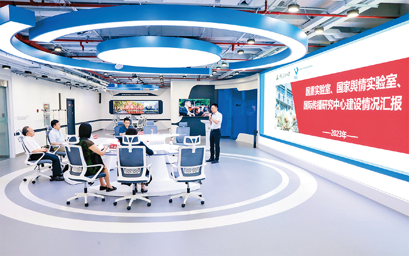 教育部黨組巡視聚焦高等教育“四個服務”時代使命,把服務國家重大戰(zhàn)略作為巡視監(jiān)督重點內容。圖為2023年6月1日,教育部黨組第一巡視組在中國傳媒大學調研教育部首批試點建設的9家哲學社會科學重點實驗室之一——國家輿情實驗室。(教育部供圖)