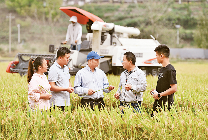 教育部黨組通過政治巡視推動直屬高校黨委扛牢政治責任、強化使命擔當。圖為2021年10月8日,南京農(nóng)業(yè)大學師生在貴州省黔東南苗族侗族自治州麻江縣種植示范基地。該基地是在南京農(nóng)業(yè)大學幫助下建成的,培育出優(yōu)質稻種“寧香粳9號”。(教育部供圖)