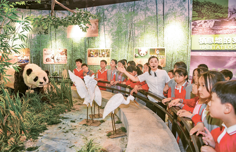 新時(shí)代以來,教育系統(tǒng)著力推動(dòng)思想政治教育、專業(yè)教育與創(chuàng)新教育、社會(huì)實(shí)踐、志愿服務(wù)等的融合。圖為2024年5月17日,學(xué)生們?cè)诮饕素S熊貓科技館開展“行走的思政課”主題科普教育活動(dòng),增強(qiáng)節(jié)約資源和保護(hù)自然環(huán)境意識(shí)。(人民圖片 周亮/攝)