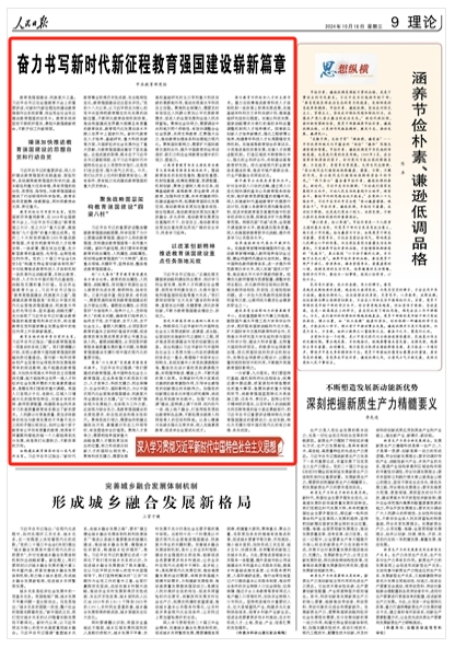 習(xí)近平總書記的重要講話整體擘畫教育強(qiáng)國(guó)戰(zhàn)略圖景,科學(xué)回答了為什么要建設(shè)教育強(qiáng)國(guó)、建設(shè)什么樣的教育強(qiáng)國(guó)、怎樣建設(shè)教育強(qiáng)國(guó)等一系列重大問題。新時(shí)代新征程,我們要牢牢把握教育的政治屬性、人民屬性、戰(zhàn)略屬性,深刻領(lǐng)會(huì)教育強(qiáng)國(guó)的“六大特質(zhì)”,緊扣重點(diǎn)領(lǐng)域、關(guān)鍵環(huán)節(jié),堅(jiān)持系統(tǒng)、整體推進(jìn)教育強(qiáng)國(guó)建設(shè)。