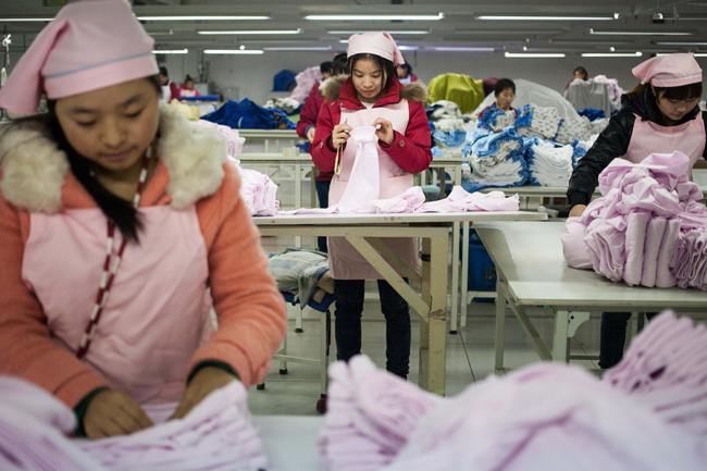 11月22日,在山東科技職業(yè)學(xué)院,紡織服裝系學(xué)生對(duì)服裝產(chǎn)品進(jìn)行檢驗(yàn)。(新華社記者 白雪騏攝)