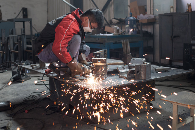 11月22日,在山東科技職業(yè)學(xué)院,機(jī)械工程系學(xué)生王金華在生產(chǎn)實(shí)訓(xùn)基地打磨零件。(新華社記者 白雪騏攝)