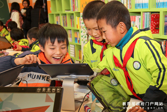 學(xué)生在“夢(mèng)想中心”使用平板電腦聽故事、畫圖、搜索音樂和動(dòng)畫片。目前,會(huì)寧全縣在中心小學(xué)以上的學(xué)校已經(jīng)建起了69個(gè)這樣的“夢(mèng)想中心”,并將其中的夢(mèng)想課程全部納入校本課程計(jì)劃。孩子們每周都有一次機(jī)會(huì)走進(jìn)夢(mèng)想教室,體驗(yàn)信息化背景下夢(mèng)想課程的魅力。(張勁松/攝 任巍/文)