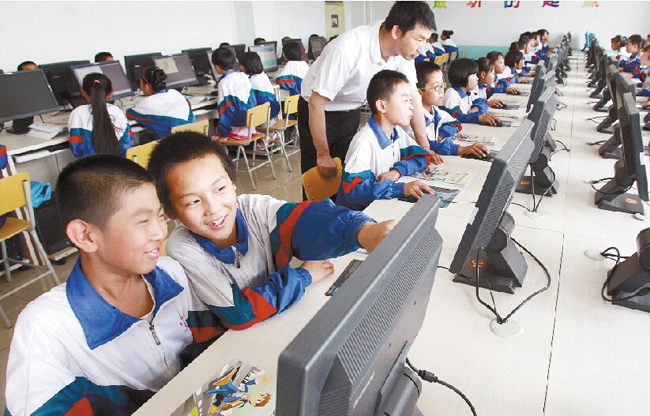 山西省朔州市平魯區(qū)學生在上信息技術課。(本報記者 張學軍/攝)(資料圖片)