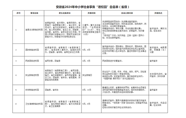 附件:安徽省2024年中小學(xué)社會(huì)事務(wù)進(jìn)校園白名單(省級(jí))