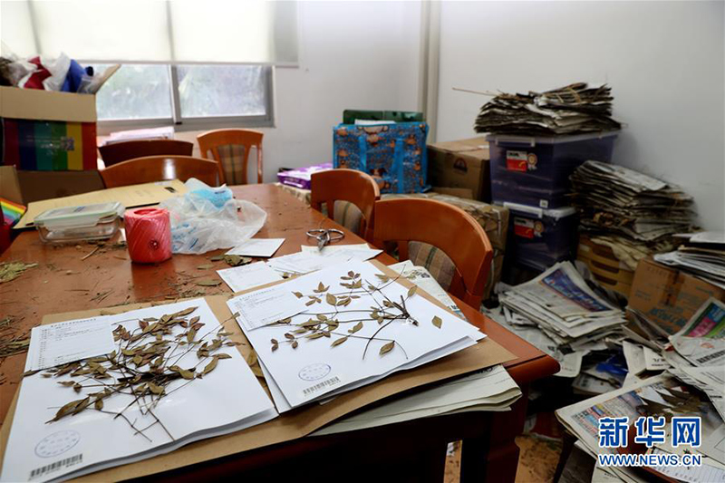 在復(fù)旦大學(xué)鐘揚(yáng)的工作間里,大量報(bào)紙中夾存著他和團(tuán)隊(duì)從各地采集的待整理植物標(biāo)本(新華社記者 2018年1月24日 劉穎/攝)