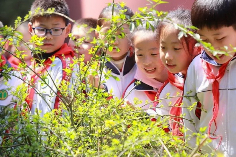 2019年4月1日,江蘇省無錫市揚名中心小學的學生賞春踏青。(視覺中國圖)