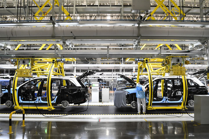 這是在位于重慶市兩江新區(qū)的賽力斯汽車超級(jí)工廠智能化生產(chǎn)作業(yè)現(xiàn)場(chǎng)(2024年6月7日攝)。(新華社記者 王全超/攝)