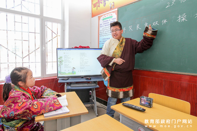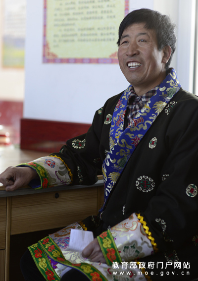 天??h抓喜秀龍鄉(xiāng)代乾村小學(xué)教師張拉毛東智曾被評(píng)為“2013年隴原最美鄉(xiāng)村教師”。28年守候牧區(qū)小學(xué),愛生如子、愛校如家,在自己摯愛的工作崗位上默默奉獻(xiàn),在談到自己的學(xué)生時(shí)總能看到他滿足的笑容。(任巍/攝)