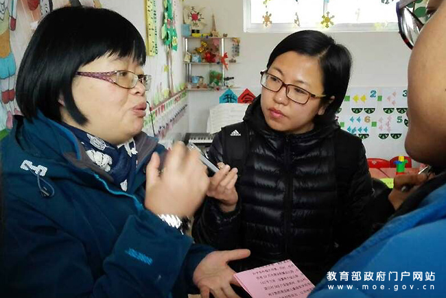 采訪中巧遇蘭州市實驗幼兒園園長、曾獲“2013年全國教書育人楷?!狈Q號的劉志。據(jù)了解,按照甘肅省實施的“學(xué)前教育向行政村延伸計劃”,基礎(chǔ)薄弱的幼兒園需對口幫扶來提升師資和管理水平,今天她就是來做幫扶的。(任巍/攝)