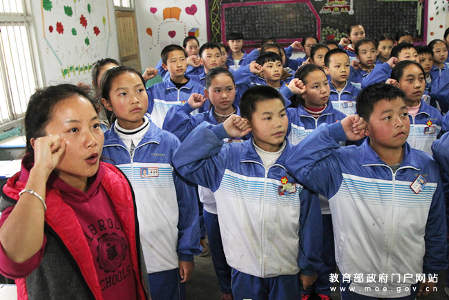 谷硐中學除了營養(yǎng)餐提升外,寄宿期間集體主義和道德品質(zhì)的培養(yǎng)也十分重要。記者采訪期間,班級正在召開主題班會,老師正在帶領(lǐng)著學生宣誓。(樊世剛/攝 王唯/文)