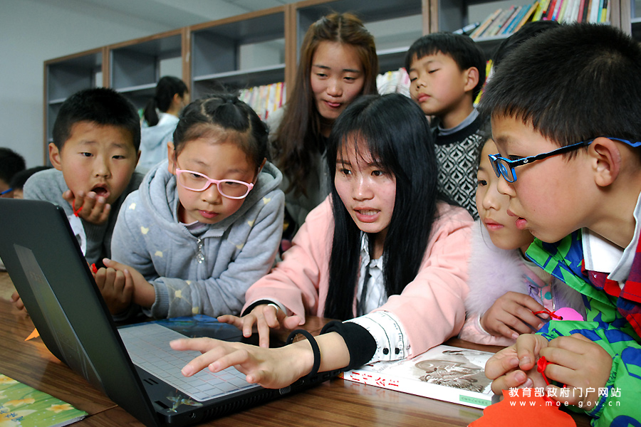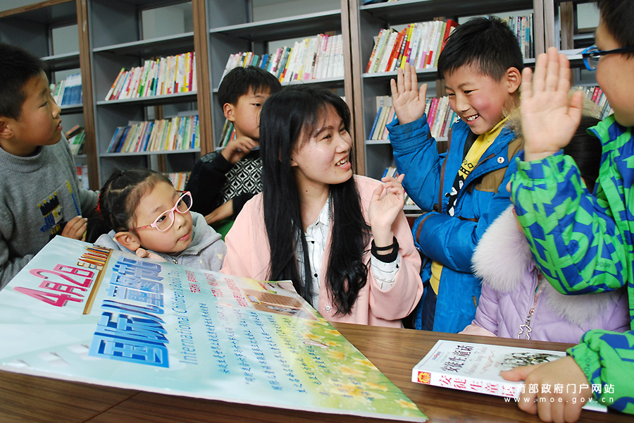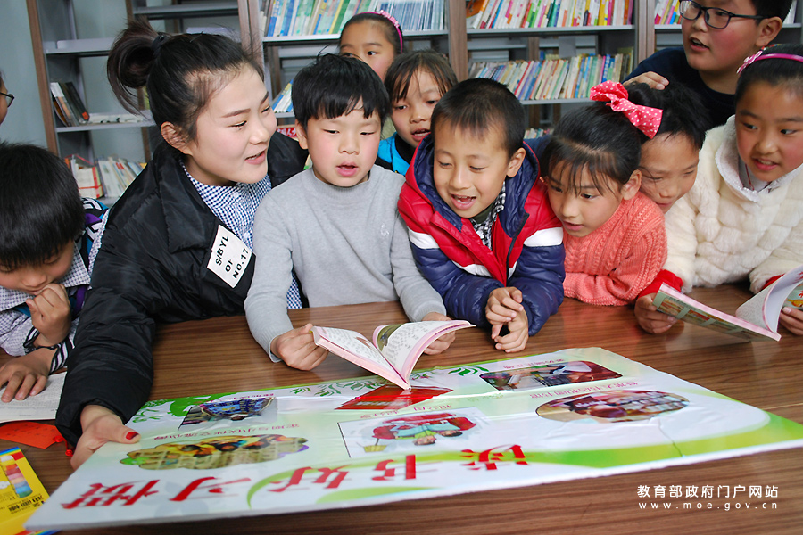 大學(xué)生志愿者指導(dǎo)“小候鳥”讀好書