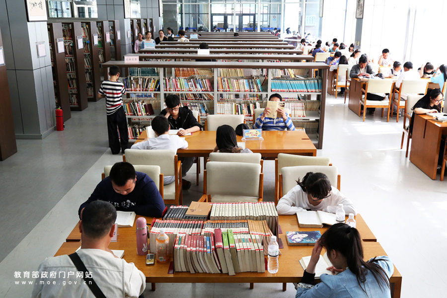 1/0“五一”小長(zhǎng)假期間,河南省焦作市許多大學(xué)生、中小學(xué)生或結(jié)伴而行、或在家長(zhǎng)陪同下來(lái)到圖書館里閱讀“充電”,在書香中度過(guò)一個(gè)充實(shí)的假期。(徐宏星/攝)