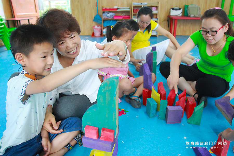 平陸縣啟智樂育幼兒園中(二)班劉子渲(腦灘)順利完成積木搭建,受到老師贊揚(yáng)。(張學(xué)軍/攝)