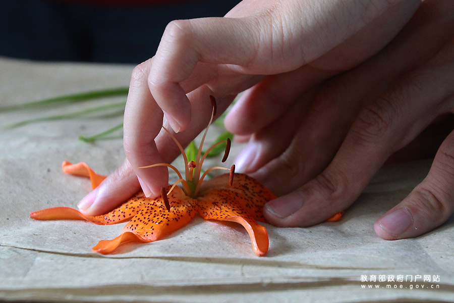 西北農(nóng)林科技大學(xué)學(xué)生精心制作植物標(biāo)本。(張學(xué)軍 靳軍/攝)