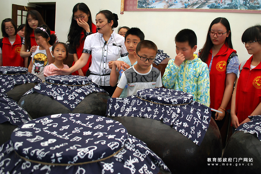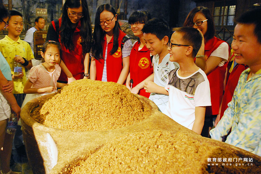近日,江蘇大學志愿者帶著鎮(zhèn)江市和平路街道征潤州社區(qū)的小朋友走進鎮(zhèn)江醋文化博物館,參觀學習鎮(zhèn)江香醋的悠久歷史,了解和體驗香醋的釀造工藝,感受醋文化的魅力,豐富暑假生活。(石玉成 丁永萍/攝)