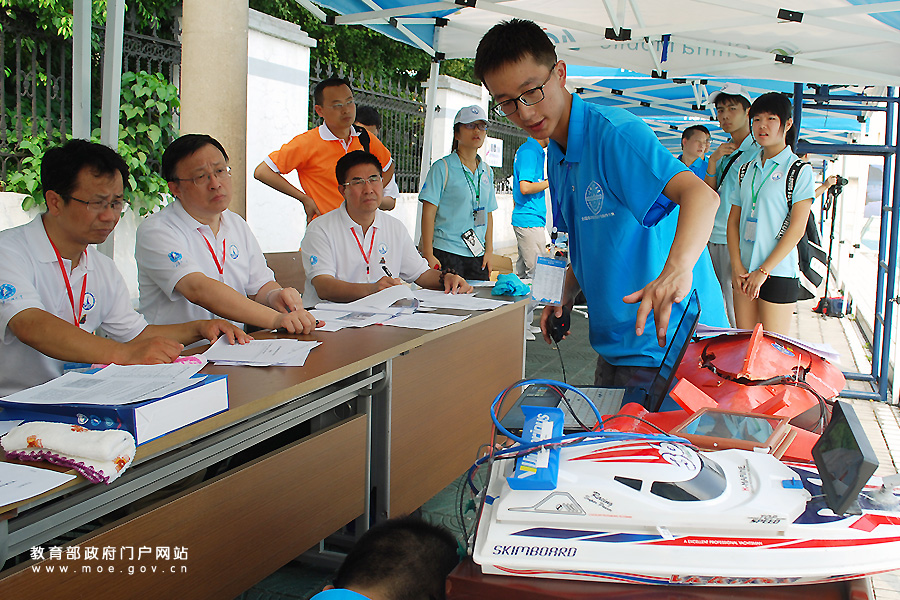 1/0中國人民解放軍海軍工程大學(xué)的學(xué)生在進行帆船模型競速比賽。8月20日,為期兩天的第五屆全國海洋航行器設(shè)計與制作大賽在江蘇科技大學(xué)舉行。本屆大賽主題為“綠色·創(chuàng)新,走向深藍”,來自全國各地的35所高校的820名參賽選手在創(chuàng)意設(shè)計、設(shè)計與制作、艦船模型智能航行、名船名艦外觀模型仿真制作、船模競速類和帆船模型競速6個類別的425個項目中展開角逐,展示大學(xué)生們的團結(jié)協(xié)作精神和科技創(chuàng)新成果。(石玉成 王琳/攝)