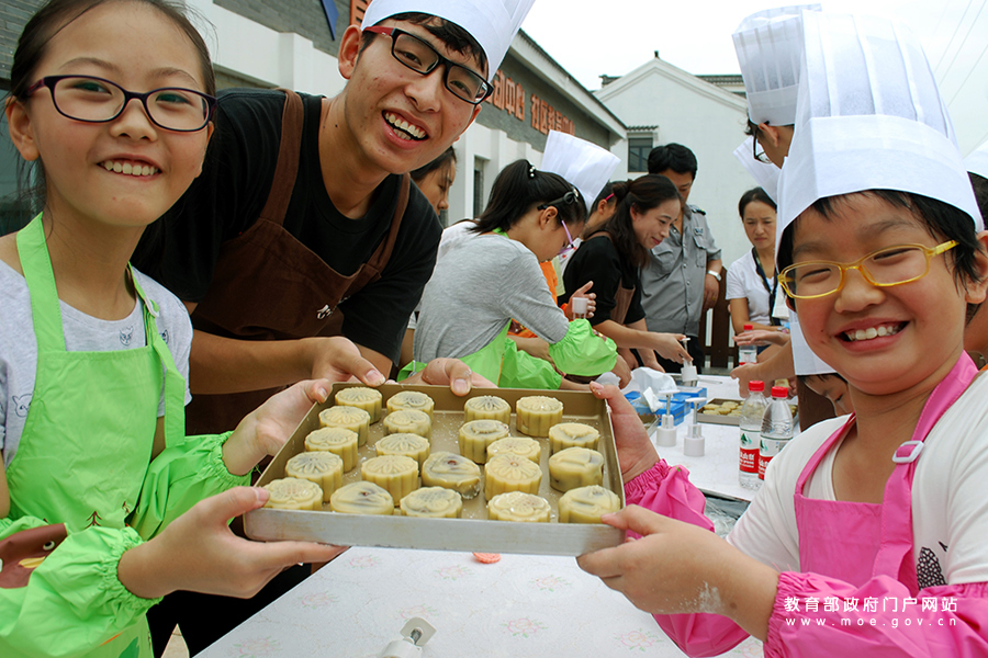 1/0小朋友在開(kāi)心地學(xué)習(xí)做月餅。(石玉成 肖怡晨/攝)