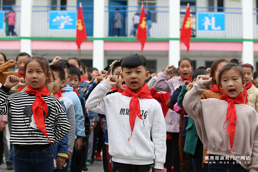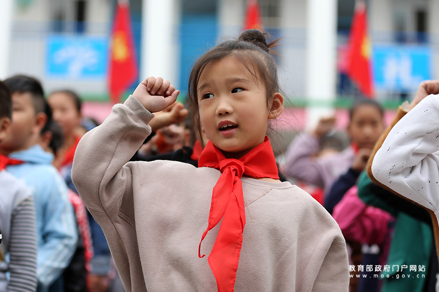 1/010月12日,河南省溫縣第一實(shí)驗(yàn)小學(xué)組織開展入隊(duì)儀式和重溫誓詞主題活動(dòng),通過(guò)給新入隊(duì)同學(xué)系上紅領(lǐng)巾、新隊(duì)員宣誓、重溫誓詞等方式,紀(jì)念中國(guó)少年先鋒隊(duì)建隊(duì)67周年。(徐宏星/攝)
