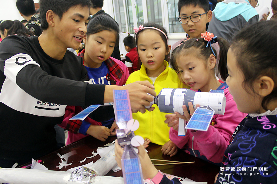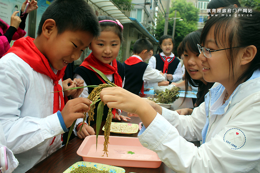 志愿者在為小學生講解水稻的生長過程。(石玉成 譚海波/攝)