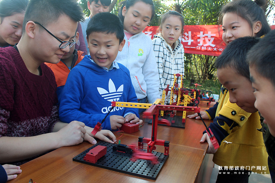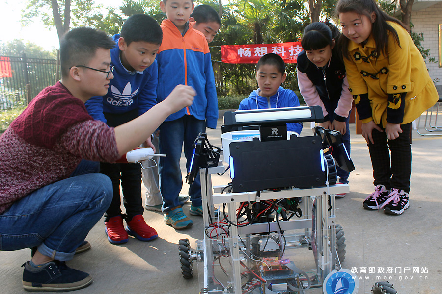 志愿者在為小朋友演示講解極速渦流智能車的功能。近日,江蘇科技大學(xué)志愿者走進(jìn)鎮(zhèn)江市潤(rùn)州工業(yè)園區(qū)鲇魚套村,開展“娃娃學(xué)科普,快樂度周末”活動(dòng),志愿者為小朋友演示講解慧魚模型、智能車和機(jī)器人等科普知識(shí),激發(fā)孩子們學(xué)科學(xué)、用科學(xué)的興趣,度過快樂的科普周末。(石玉成 周志輝/攝)