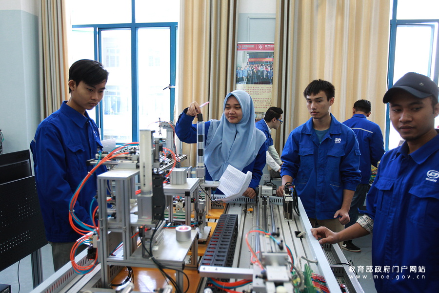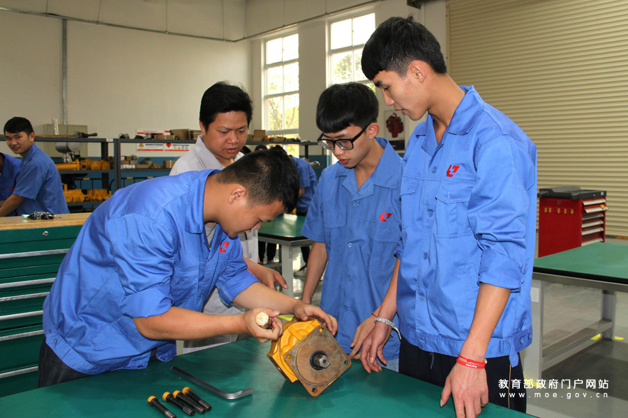 柳州鐵道職業(yè)技術(shù)學(xué)院的學(xué)生正在汽車整車綜合實訓(xùn)室內(nèi)進行實踐操作。為迎接黨的十九大,教育部新聞辦組織中央媒體采訪團深入地方,用圖文記錄十八大以來教育改革發(fā)展的新進展。5月5日,采訪團一行走進廣西柳州,就職業(yè)教育如何服務(wù)“一帶一路”,走訪了廣西柳州三所高職院校。(席皓格/攝 忠建豐/文)