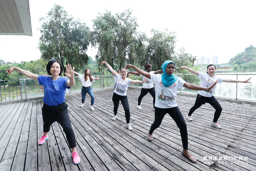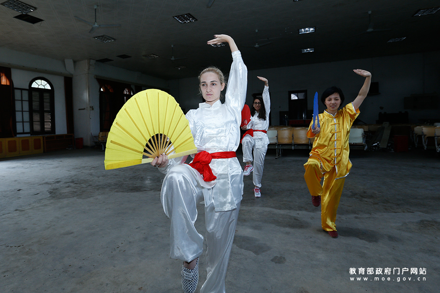 福建師范大學“一帶一路”沿線國家的留學生表演太極拳,一招一式頗有專業(yè)風范。為迎接黨的十九大,教育部新聞辦組織中央媒體采訪團深入地方,用圖文記錄十八大以來教育改革發(fā)展的新進展。5月16日至18日,采訪團一行走進福州大學、廈門大學等七所高校,圍繞“一帶一路”沿線國家留學生學習漢語和中華文化相關(guān)情況進行采訪報道,更好的展現(xiàn)“一帶一路”中的文化傳承。(張勁松/攝 李娜/文)