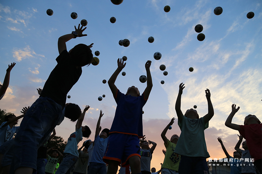 1/0足球社團(tuán)的學(xué)生在訓(xùn)練結(jié)束后激情拋球。(徐宏星/攝)