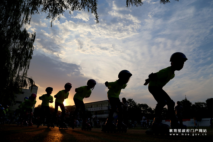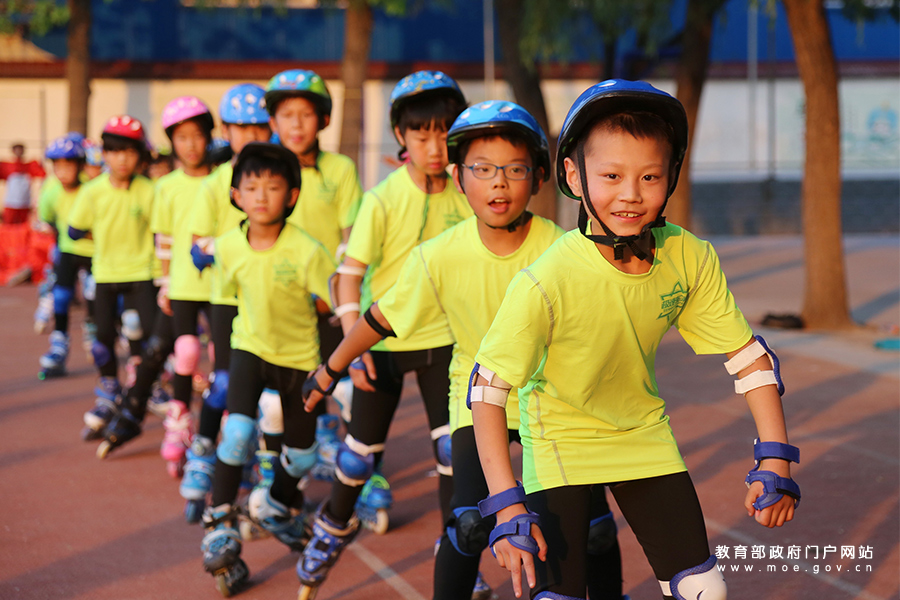 1/0輪滑社團(tuán)的學(xué)生們?cè)诰毩?xí)輪滑。(徐宏星/攝)