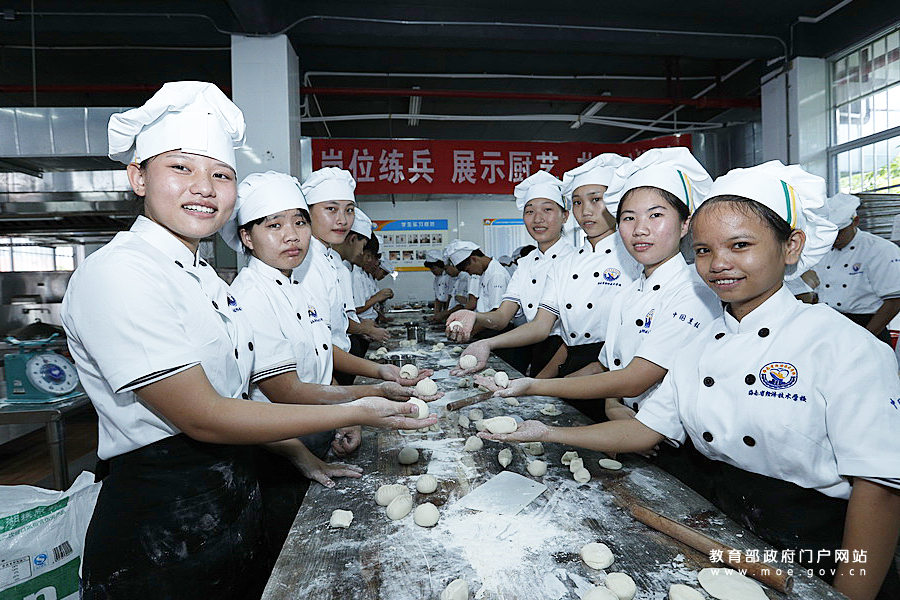 1/0在海南省經(jīng)濟(jì)技術(shù)學(xué)校中西面點(diǎn)專業(yè)班內(nèi),陳益飛老師在教授同學(xué)們中式面點(diǎn)的制作技巧。(張勁松/攝 王穎/文)