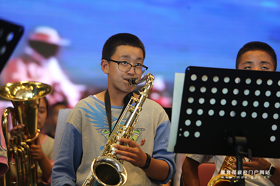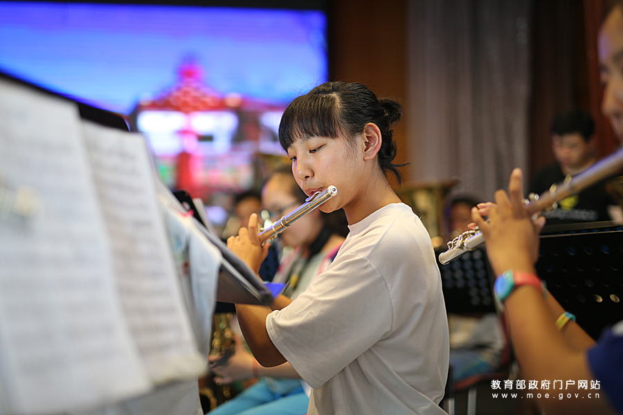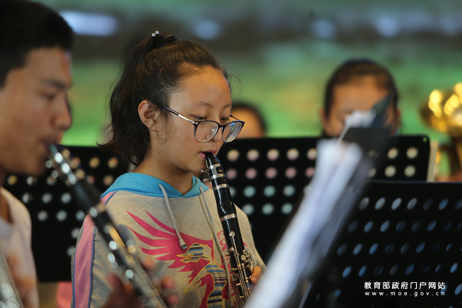 上海市共康中學藏族學生管樂團的學生們正在練習吹奏圓號。為迎接黨的十九大,教育部新聞辦組織中央媒體采訪團深入地方,用圖文記錄十八大以來教育改革發(fā)展的新進展。7月5日,采訪團一行走進上海,就“內(nèi)地民族班民族團結教育情況”走訪了上海市共康中學。(樊世剛/攝 忠建豐/文)
