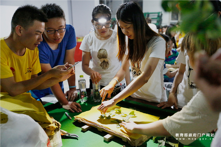 學(xué)生們互相合作,制作植物標(biāo)本。(段胤凱/攝)