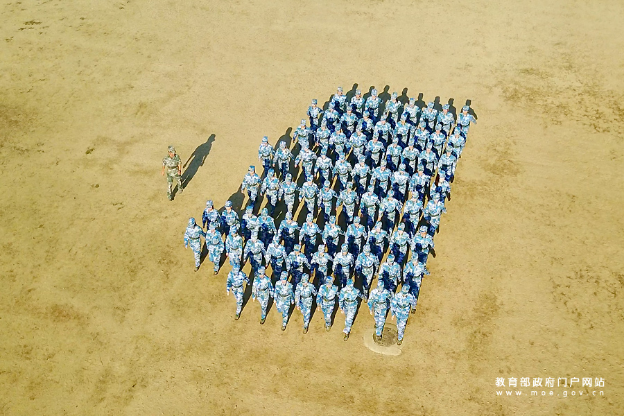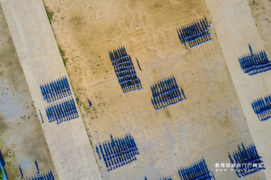 1/0“紀律嚴明,訓練刻苦”——北京大學軍訓團日常訓練航拍。(張浩天/攝)
