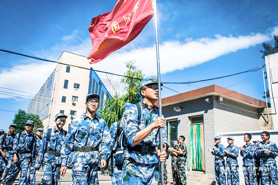 1/0“紅旗在手,壯志在心”——北京大學軍訓團國旗班訓練。(呂惠之/攝)