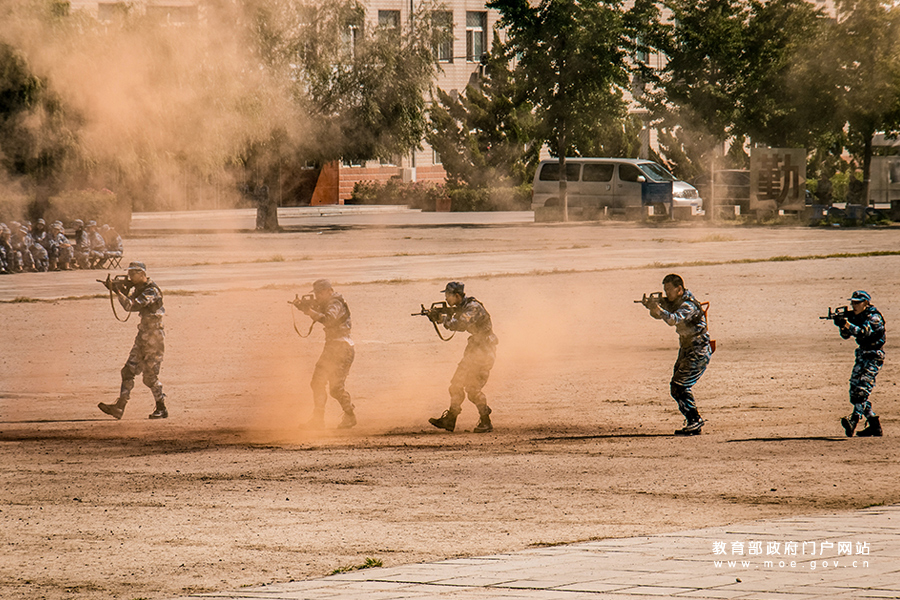 1/0“靜如青松,動如閃電”——北京大學軍訓團戰(zhàn)術班表演。(程佳路/攝)
