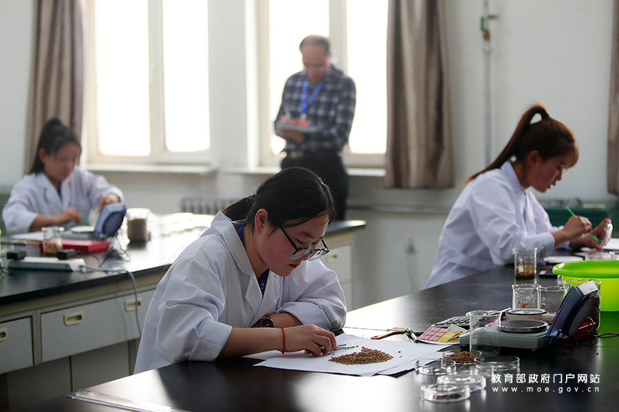 農(nóng)林牧漁類種子質(zhì)量檢測項目選手在緊張比賽中。(張學(xué)軍/攝)