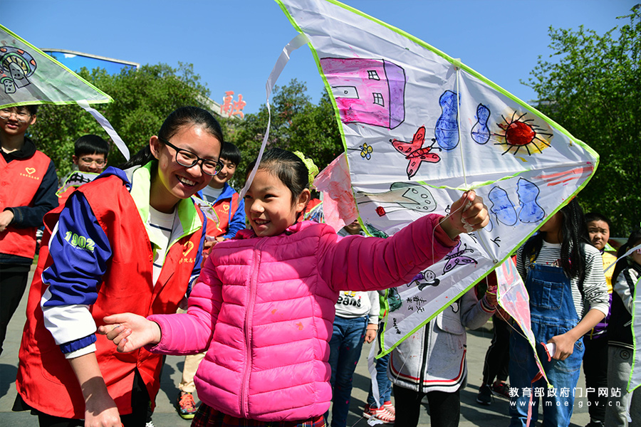 1/0江蘇大學(xué)志愿者和小朋友準(zhǔn)備放飛手繪風(fēng)箏。(石玉成 周存君/攝)