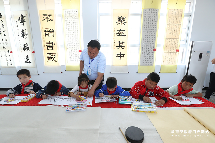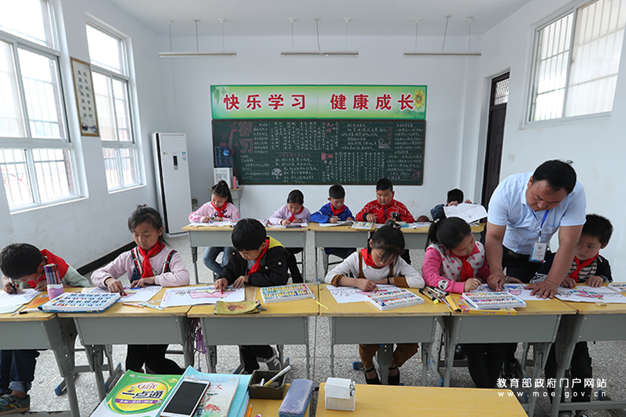 1/0新安縣鐵門鎮(zhèn)老君洞教學(xué)點(diǎn),老師正在為同學(xué)們講授《西沙群島》。新安縣鐵門鎮(zhèn)老君洞教學(xué)點(diǎn)共有教職工4人,每位老師都要同時擔(dān)任多門課程。學(xué)校借助學(xué)區(qū)中心小學(xué)的共享幫扶資源,豐富學(xué)生的課內(nèi)外生活。為貫徹落實(shí)黨的十九大精神,聚焦教育系統(tǒng)長期以來的熱點(diǎn)難點(diǎn)問題,5月10日,由教育部新聞辦組織的教育奮進(jìn)之筆“1+1”系列發(fā)布采訪活動走進(jìn)河南,深入了解鄉(xiāng)村小規(guī)模學(xué)校和鄉(xiāng)鎮(zhèn)寄宿制學(xué)校建設(shè)情況。(張勁松/攝 李丹/文)
