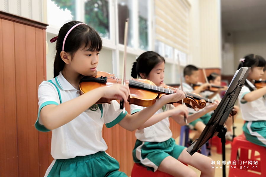 1/0華融小學(xué)管樂班的小學(xué)員正在吹奏口風(fēng)琴。為貫徹落實黨的十九大精神,聚焦教育系統(tǒng)長期以來的熱點難點問題,5月23日,由教育部新聞辦組織的教育奮進之筆“1+1”系列發(fā)布采訪活動走進廣東,就校內(nèi)課后服務(wù)推進情況走訪了廣州市天河區(qū)華融小學(xué)。該校積極引入第三方合作機構(gòu)以良好的師資、多樣優(yōu)質(zhì)的課程豐富了學(xué)生課后生活,既解決了“家長按時接送難”的難題又滿足了學(xué)生發(fā)展興趣特長的需要。(忠建豐/攝)