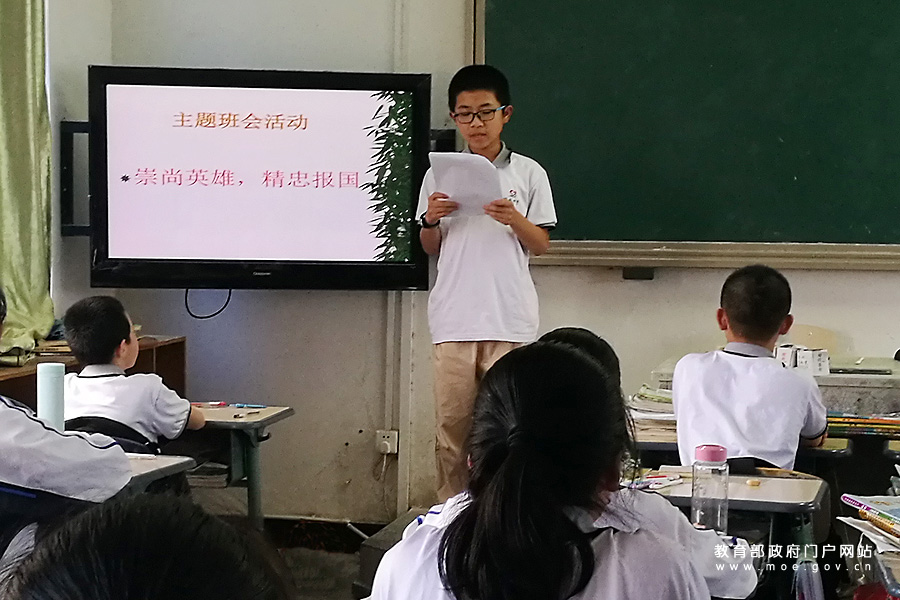 各地中小學組織開展“崇尚英雄 精忠報國”主題班會活動