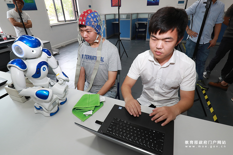 1/0浙江工業(yè)大學(xué)計(jì)算機(jī)科學(xué)與技術(shù)學(xué)院(軟件學(xué)院)學(xué)生朱文成運(yùn)用人工智能算法+機(jī)器視覺重建人體骨骼模型與機(jī)器人關(guān)節(jié)結(jié)構(gòu)模型,實(shí)時(shí)控制協(xié)作機(jī)器人。為貫徹落實(shí)黨的十九大精神,聚焦教育系統(tǒng)長(zhǎng)期以來的熱點(diǎn)難點(diǎn)問題,6月7日 ,由教育部新聞辦組織的教育奮進(jìn)之筆“1+1”系列發(fā)布采訪活動(dòng)走進(jìn)浙江,就高等學(xué)校人工智能創(chuàng)新行動(dòng)計(jì)劃有關(guān)工作開展情況走訪了浙江工業(yè)大學(xué)。(樊世剛/攝 傅鴻洲/文)
