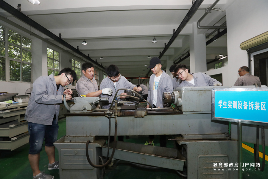 在成都工業(yè)學院國營成都無線電專用設備廠學生實訓設備拆裝區(qū),廖錫明老師正在給該校機械工程學院機械電子工程專業(yè)2016級學生講解機床拆裝要點。此舉可以讓學生更好地認識機床零件及功能、了解機床結構,掌握機床裝備方法。(張勁松/攝 忠建豐/文)