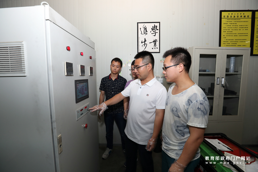 在成都工業(yè)學院材料工程學院高分子材料研究中心,鮮勇老師正在指導材料工程學院材料科學與工程專業(yè)2015級學生操作真空熱壓爐進行粉末燒結實驗。(張勁松/攝 忠建豐/文)