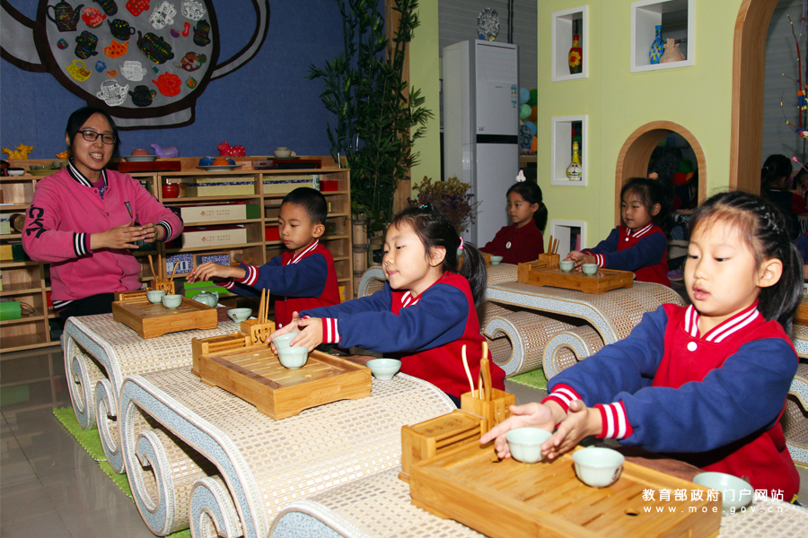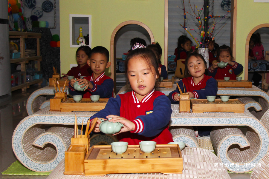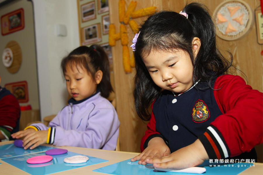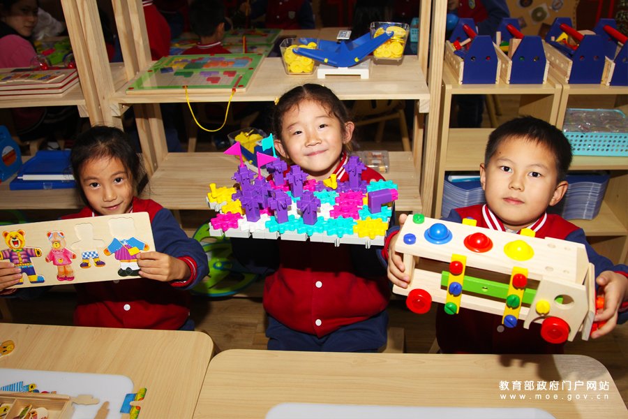 1/0在景城幼兒園織工坊,中(1)班的小朋友正在展示自己的作品。為貫徹落實黨的十九大精神和全國教育大會精神,聚焦教育系統(tǒng)長期以來的熱點難點問題,11月28日,由教育部新聞辦組織的教育奮進之筆“1+1”系列發(fā)布采訪活動走進山東,就學(xué)前教育深化改革規(guī)范發(fā)展情況走訪了濟南市歷下區(qū)景城幼兒園,該園是一所全日制公辦小區(qū)配套幼兒園。為不斷優(yōu)化學(xué)前教育資源,促進學(xué)前教育均衡發(fā)展,濟南市歷下區(qū)明確要求開發(fā)單位配建的幼兒園做到同步建設(shè)、驗收、交付,配套幼兒園驗收后,無償移交區(qū)政府舉辦公辦園并按省級示范園建設(shè)標準進行裝修及保教設(shè)施的配備。