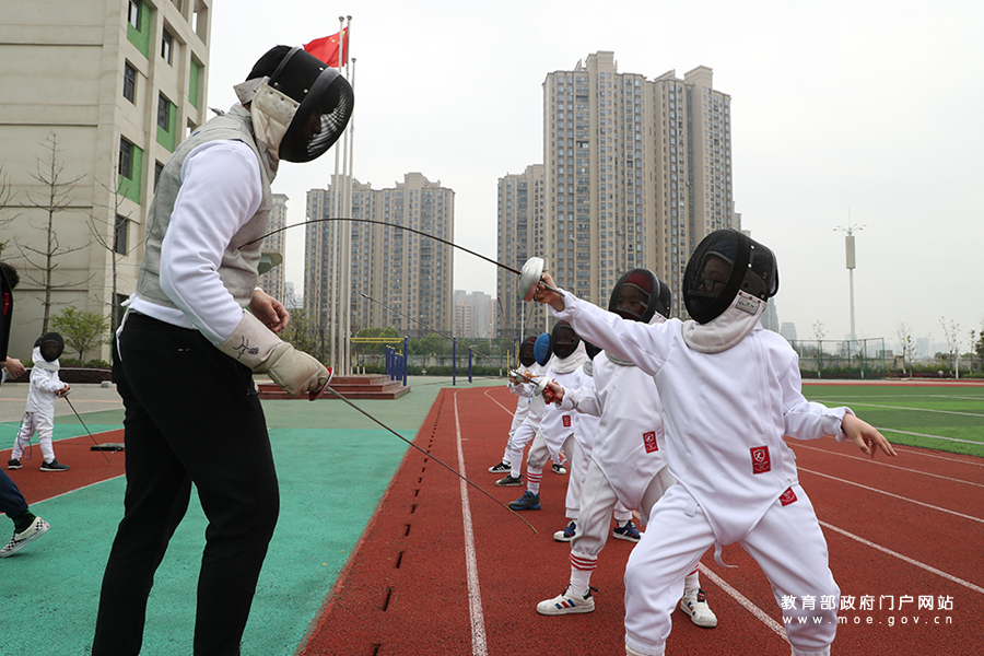 在擊劍課上,小學(xué)1-2年級(jí)的學(xué)生在專業(yè)教練的指導(dǎo)下,對(duì)擊劍動(dòng)作要領(lǐng)、站姿等方面進(jìn)行練習(xí)。擊劍運(yùn)動(dòng)不僅能培養(yǎng)學(xué)生們公平、正義、勇敢的精神,還能培養(yǎng)學(xué)生的注意力、觀察力、反應(yīng)速度等。(張勁松/攝 姚振/文)