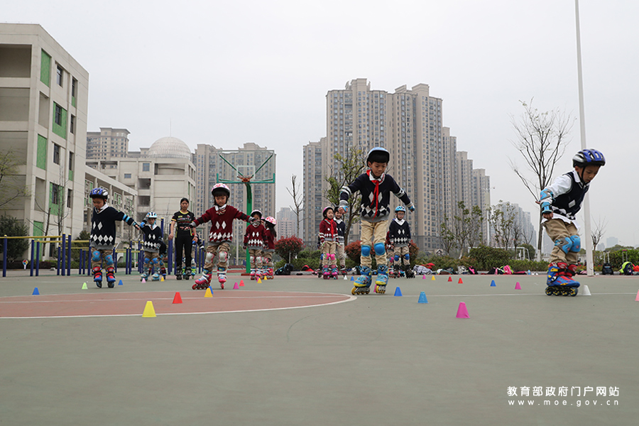 在專業(yè)輪滑老師的指導(dǎo)下,學(xué)生正在進(jìn)行花式技巧“雙魚”的練習(xí)。通過(guò)學(xué)習(xí)輪滑這項(xiàng)運(yùn)動(dòng),提高了學(xué)生們的身體平衡能力,增強(qiáng)身體柔韌性和協(xié)調(diào)性。(張勁松/攝 姚振/文)